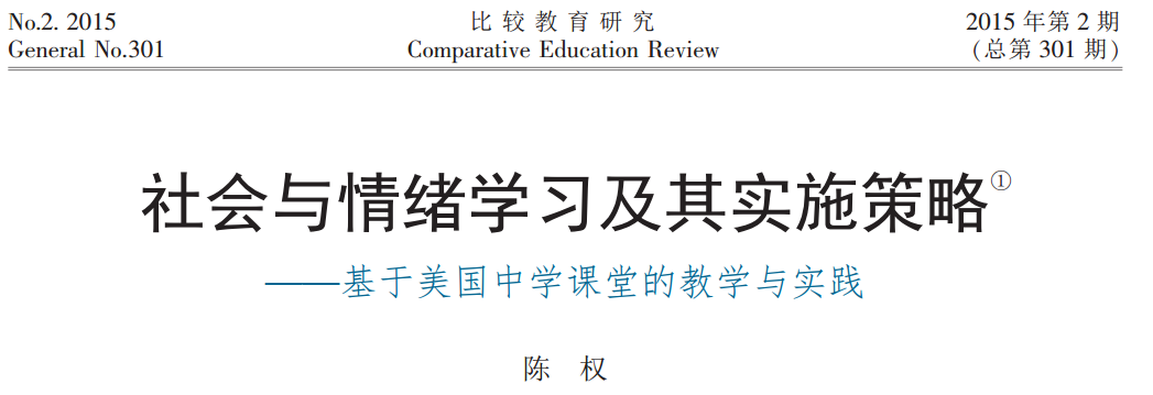 AbstractSocial and emotional learning SELwas firstly advanced by American educators, in order to promote students' emotional quotient EQ, change their attitude to life and learning so that problem behaviors could be reduced. Different from normal social studies, SEL is more integral and comprehensive which not only contains but also widens the positive intervention, including promoting EQ, training social competence, preventing violence, influencing personality, promoting mental healthy and so on. This paper focuses on introducing the connotation of SEL and the teaching strategies in American middle school to provide references for related education and study in our schools.