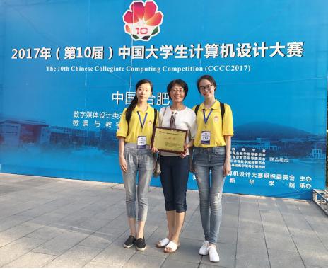 The 2017 (tenth) Chinese College Computer Design Contest was held in Hefei. Our two teams won the national second prize. Among them, Wang Yan,and the students team Wu Shumin, Yang Yizhen designed the entry "Photoshop in the clipping mask application through housing secret" won the "micro courses and teaching assistant class national award, getting highly recognized experts. Teacher Wang Hua's 2014the grade student team, Luan Yu, Ding Lei, Zhao Jinmin's entries "easy to practice" also achieved good results, won the "software application and development class" the national two prize.